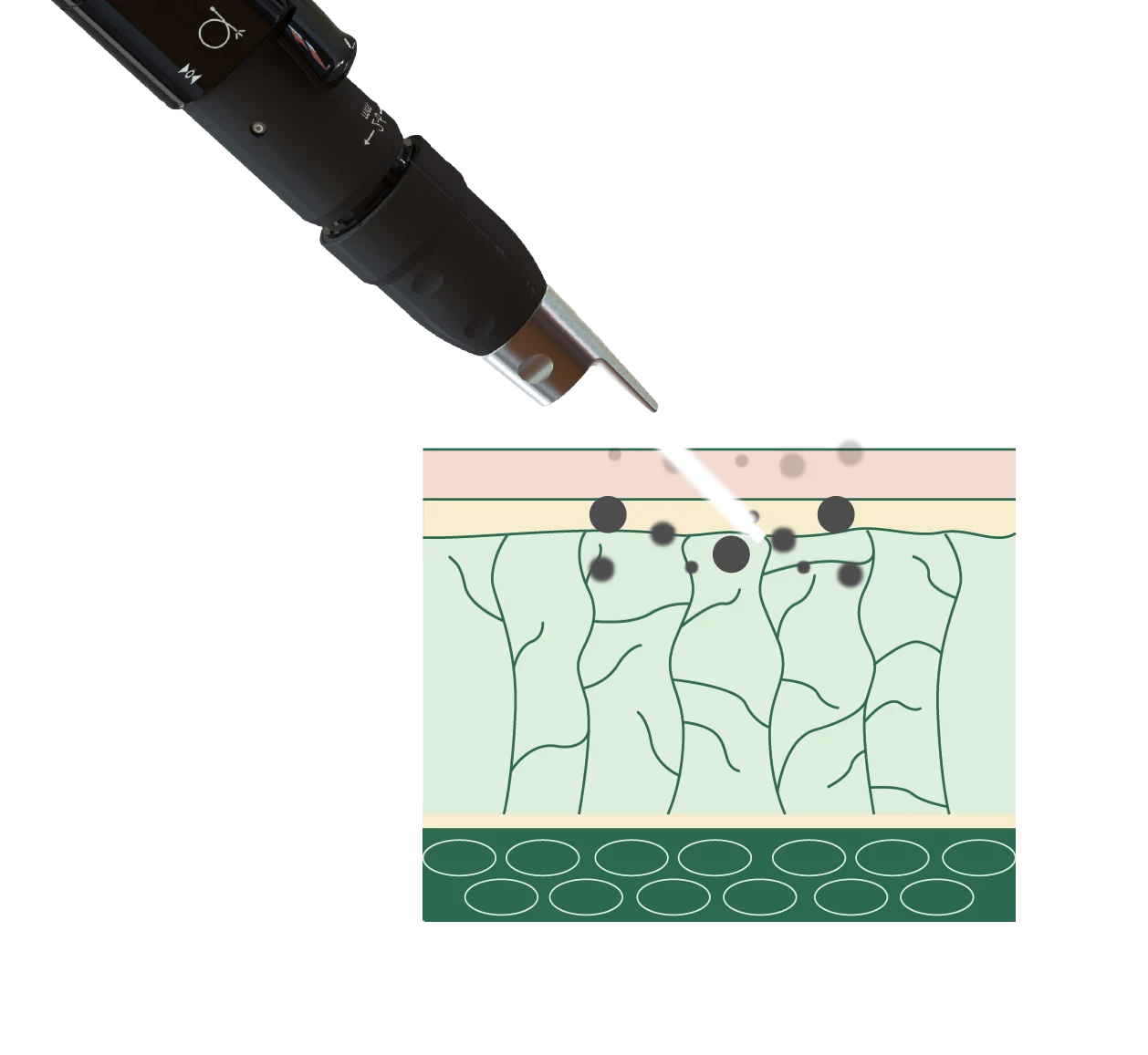 แต่อย่างใดแต่กลับกลายเป็นคลื่นความดันและพุ่งตรงเข้าไปทำลายเม็ดสีได้แบบจำเพาะเจาะจง