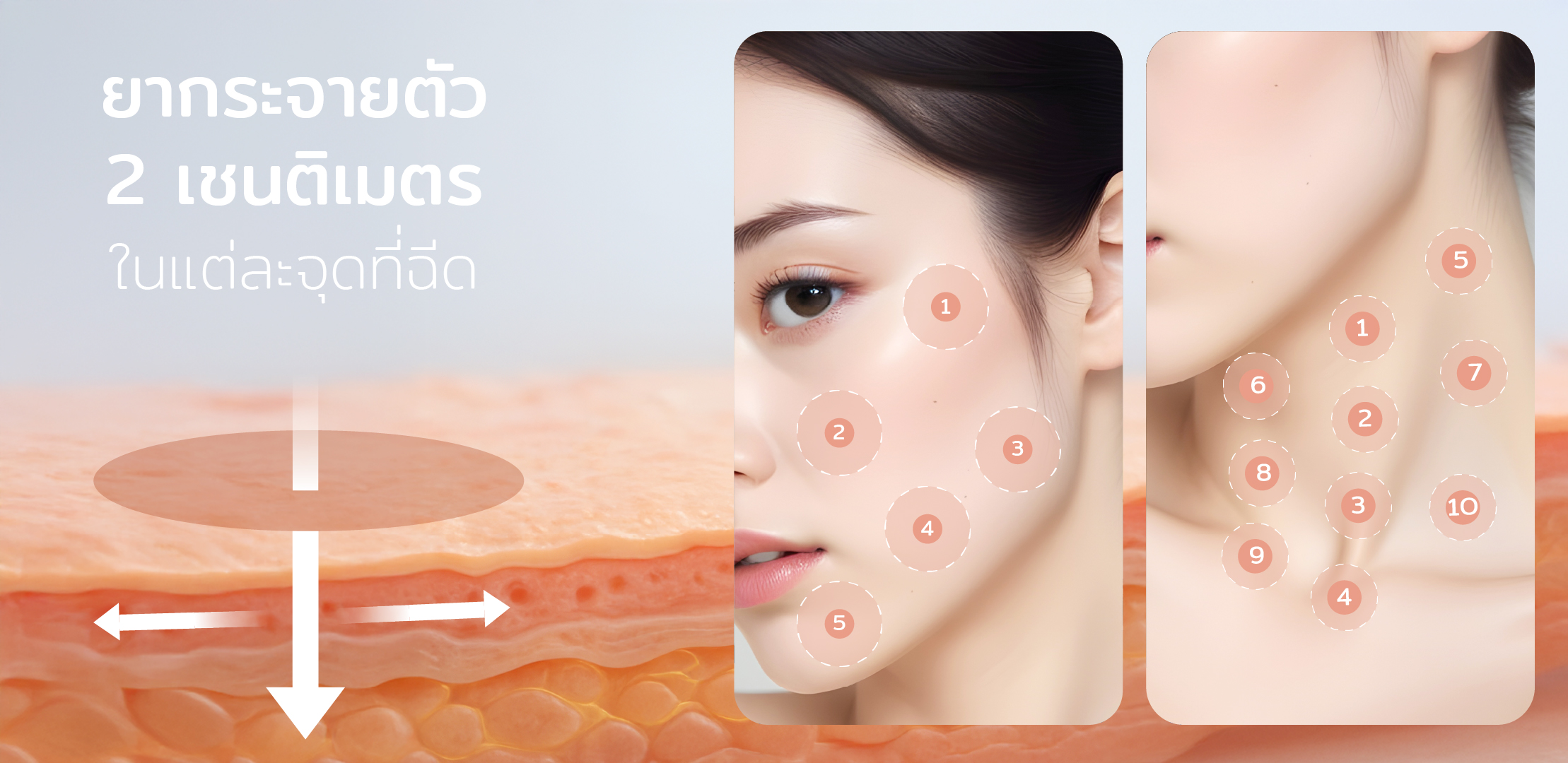 ทั่วบริเวณที่ฉีด คลอบคลุมพื้นที่กว้าง