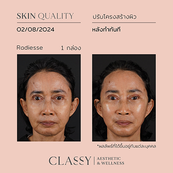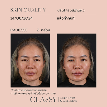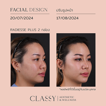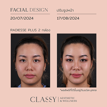 รวบรวมผลงานปรับรูปหน้าด้วยโปรแกรม RADIESSE CLASSIC (เพื่อผลลัพธ์งานผิวที่ช่วยกระตุ้นคอลลาเจน ผิวอิ่มฟู) และ RADIESSE PLUS (สร้างกรอบหน้าคมและเพิ่มมิติให้โหนกแก้ม) เป็นหนึ่งในผลิตภัณฑ์ที่ได้รับความนิยมอย่างมากที่คลินิก ด้วยเทคนิคและประสบการณ์ของแพทย์ ที่ออกแบบรูปหน้าแบบเฉพาะบุคคล ผสมผสานกับความต้องการของลูกค้า ทำให้ได้รับความไว้วางใจอย่างต่อเนื่อง